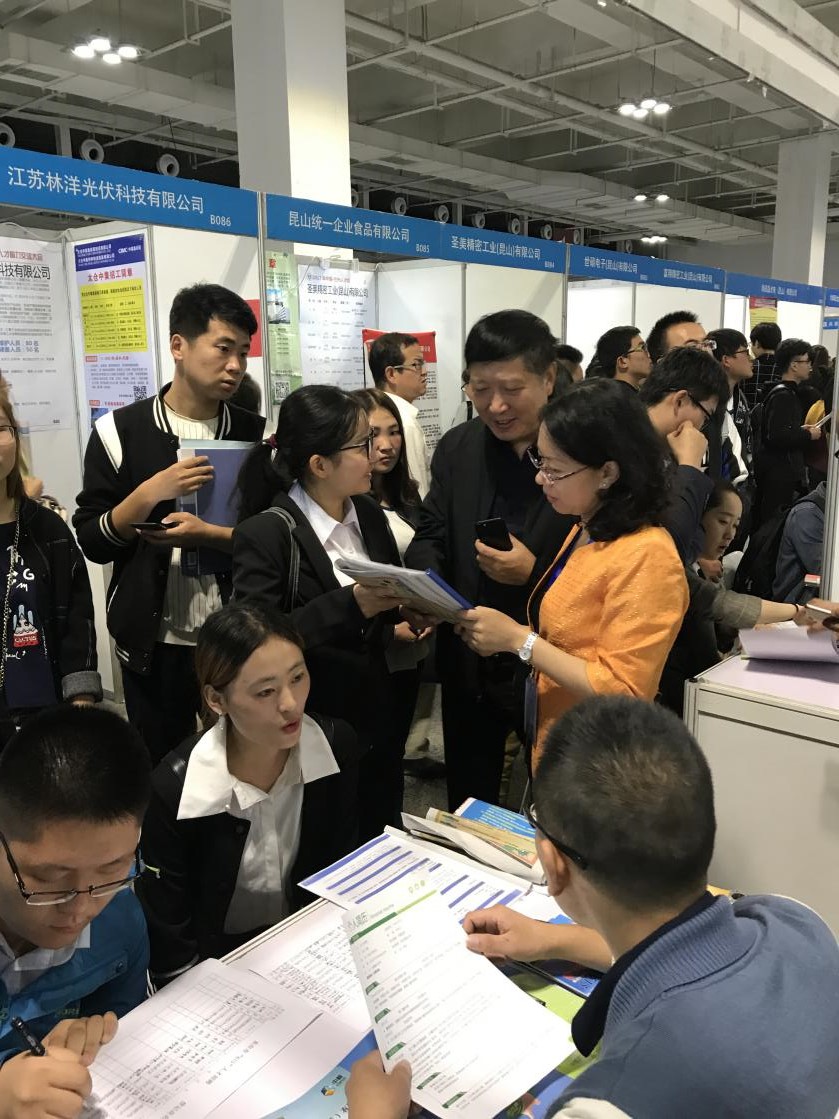 在招聘会现场,我市为引才规模最大、提供岗位数量最多的外省团队之一。中粮肉食盐城有限公司现场收到了197名本科以上毕业生的应聘申请。江苏汇源食品饮料、天合国能光伏等企业的展位前,求职毕业生也排起了长龙。